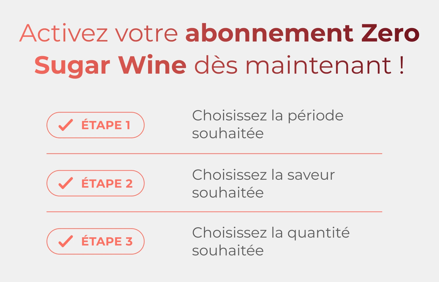 ✔️ Recevez automatiquement votre vin préféré de PURE Zero Sugar à domicile à l’intervalle souhaité.
